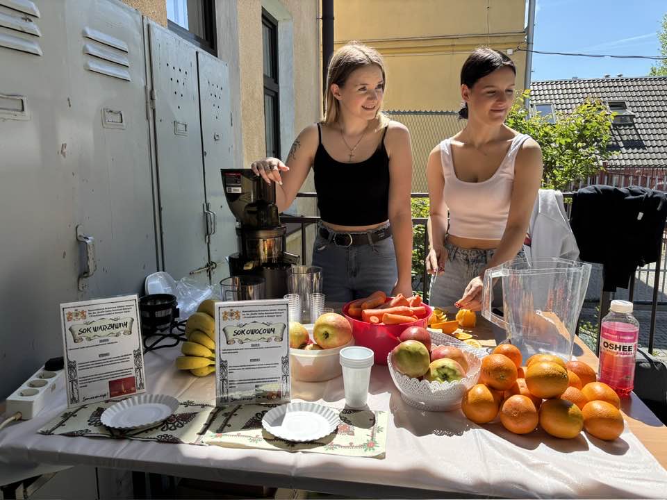 Najwięcej pracy mieli kucharze, którzy pod opieką nauczycieli, podawali w tym dniu frytki z krojonych ziemniaków, gofry z powidłami i bitą śmietaną, kiełbaski na gorąco z cebulką. Był również bigos, a w naszej polowej kuchni przygotowano tradycyjne potrawy takie jak: proziaki, pieczone ziemniaczki okraszone masełkiem i sosem czosnkowym. Nie zabrakło nawet żurku. Na spragnionych czekały soki wyciskane ze świeżych warzyw i owoców i inne napoje.