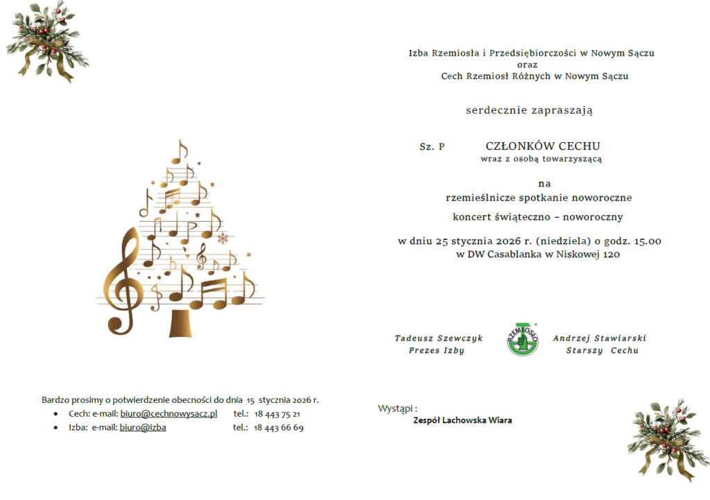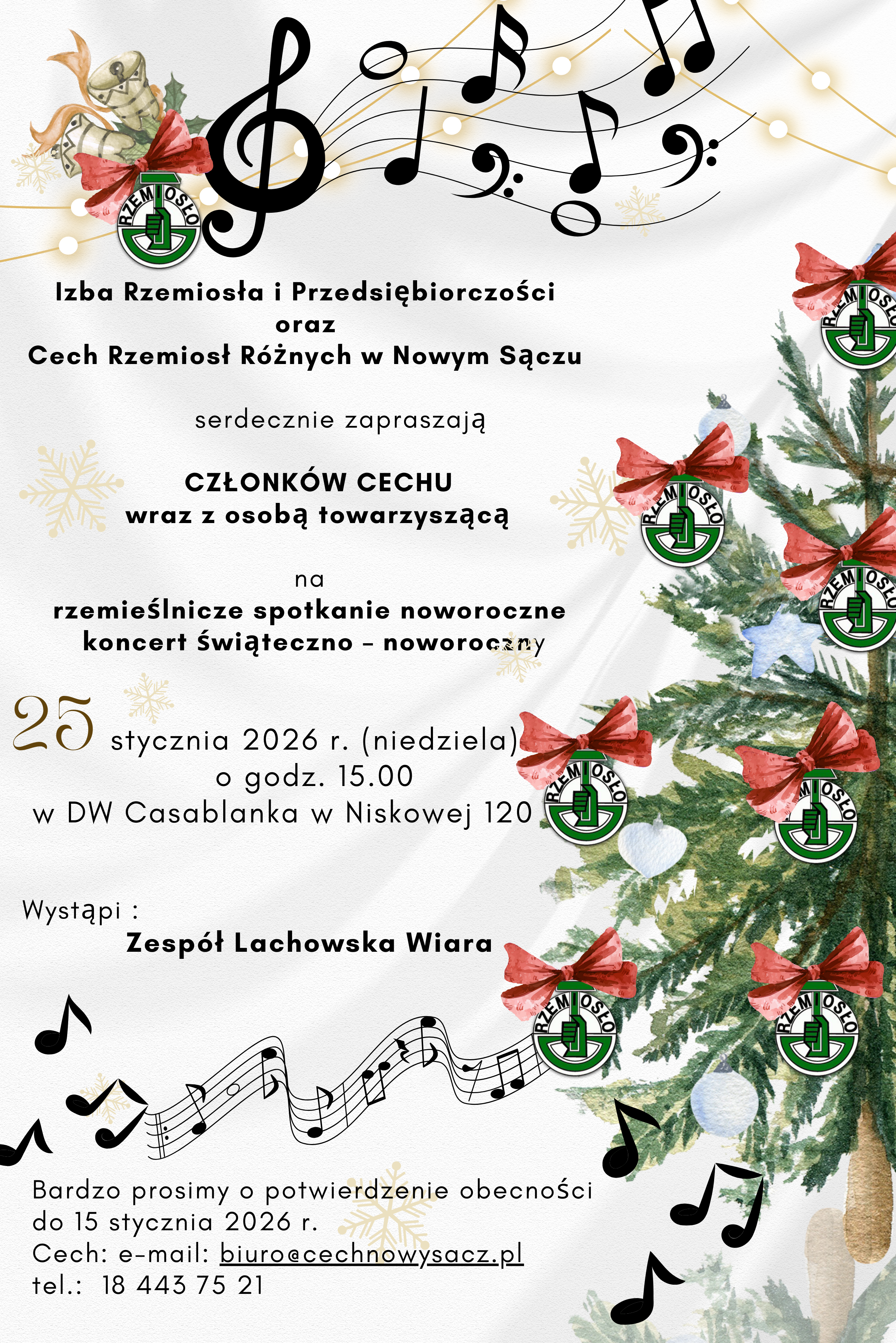 Bardzo prosimy o potwierdzenie obecności do dnia 15 stycznia 2026 r.