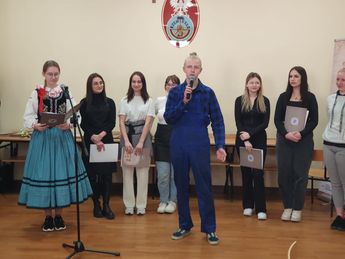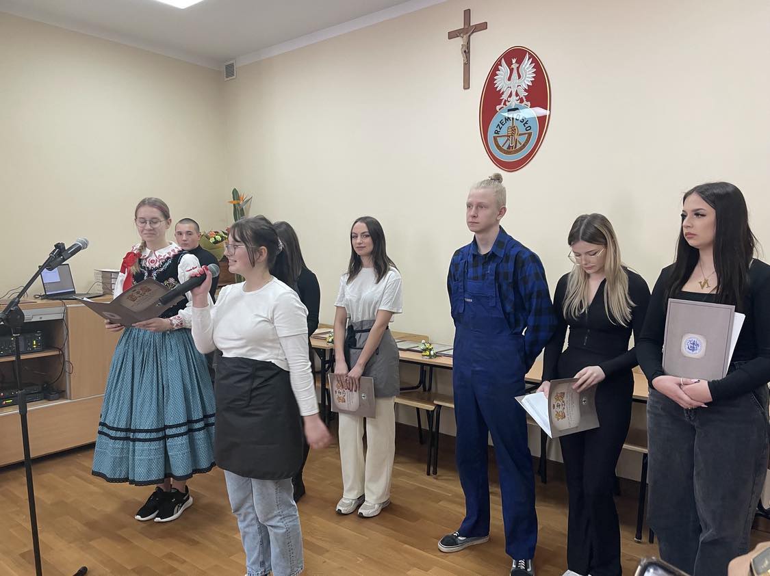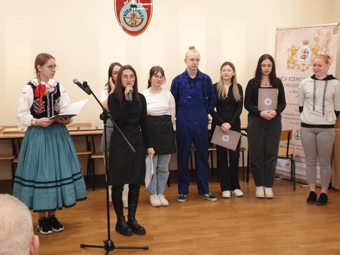 Młodzież Rzemieślniczej Branżowej Szkoły I st. im. Św. Józefa w Nowym Sączu pod kierunkiem p. Eweliny Skowron-Ściurki przedstawiła bardzo wzruszającą akademię. Słowami znanych melodii młodzi rzemieślnicy podziękowali swoim mistrzom za naukę zawodu. Szkolne koło artystyczne przygotowało dla wszystkich uczestników stroiki wielkanocne.