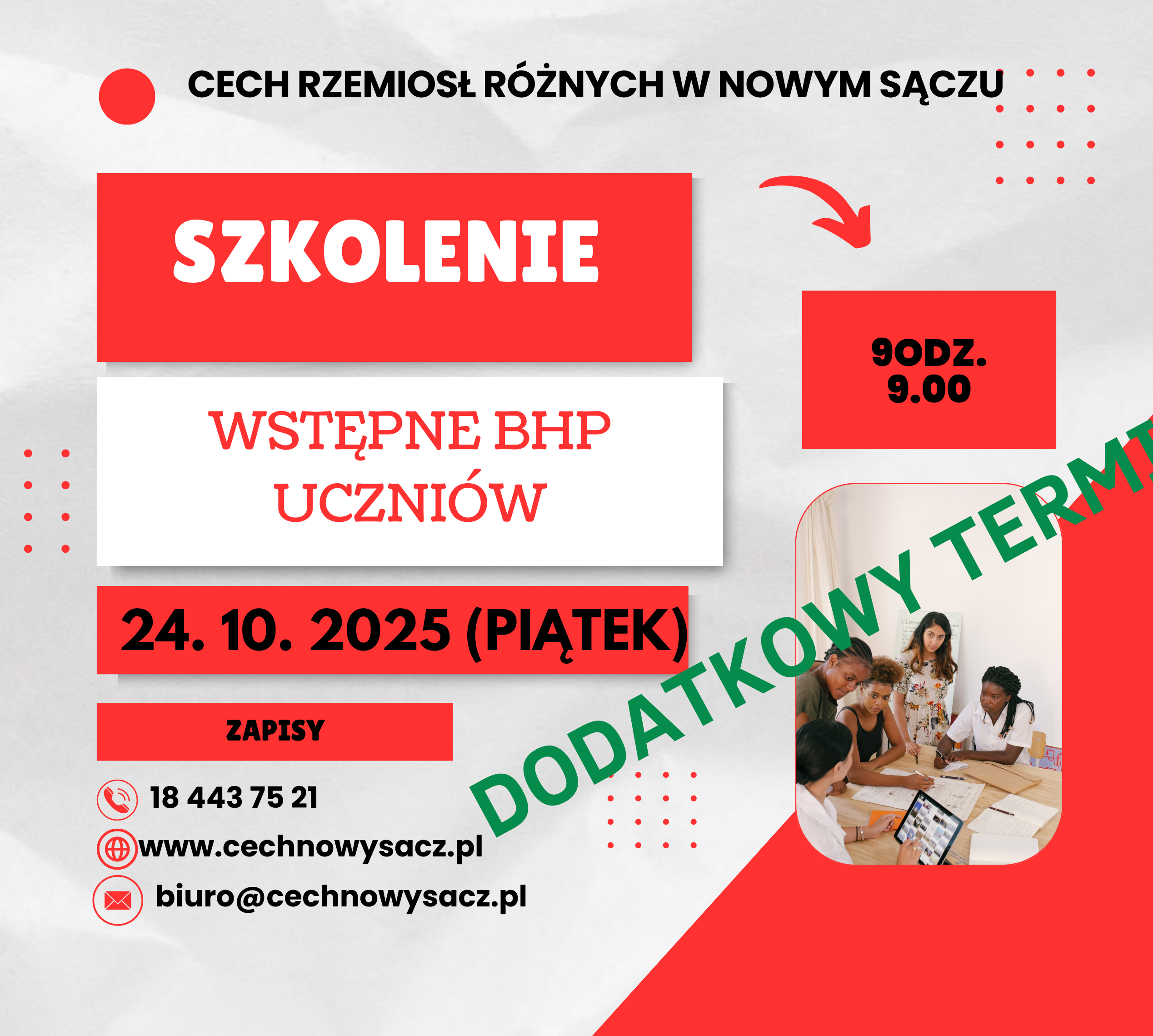 – 24 października (piątek) o godzinie 9.00, w sali wykładowej Cechu w Nowym Sączu, Rynek 11 – I piętro