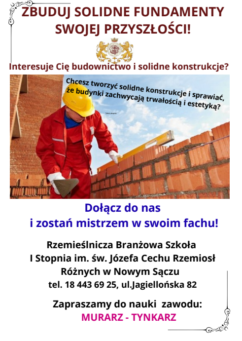 🎓 Zapraszamy absolwentów do naszej Rzemieślniczej Branżowej Szkoły I st. im. Św. Józefa CRR